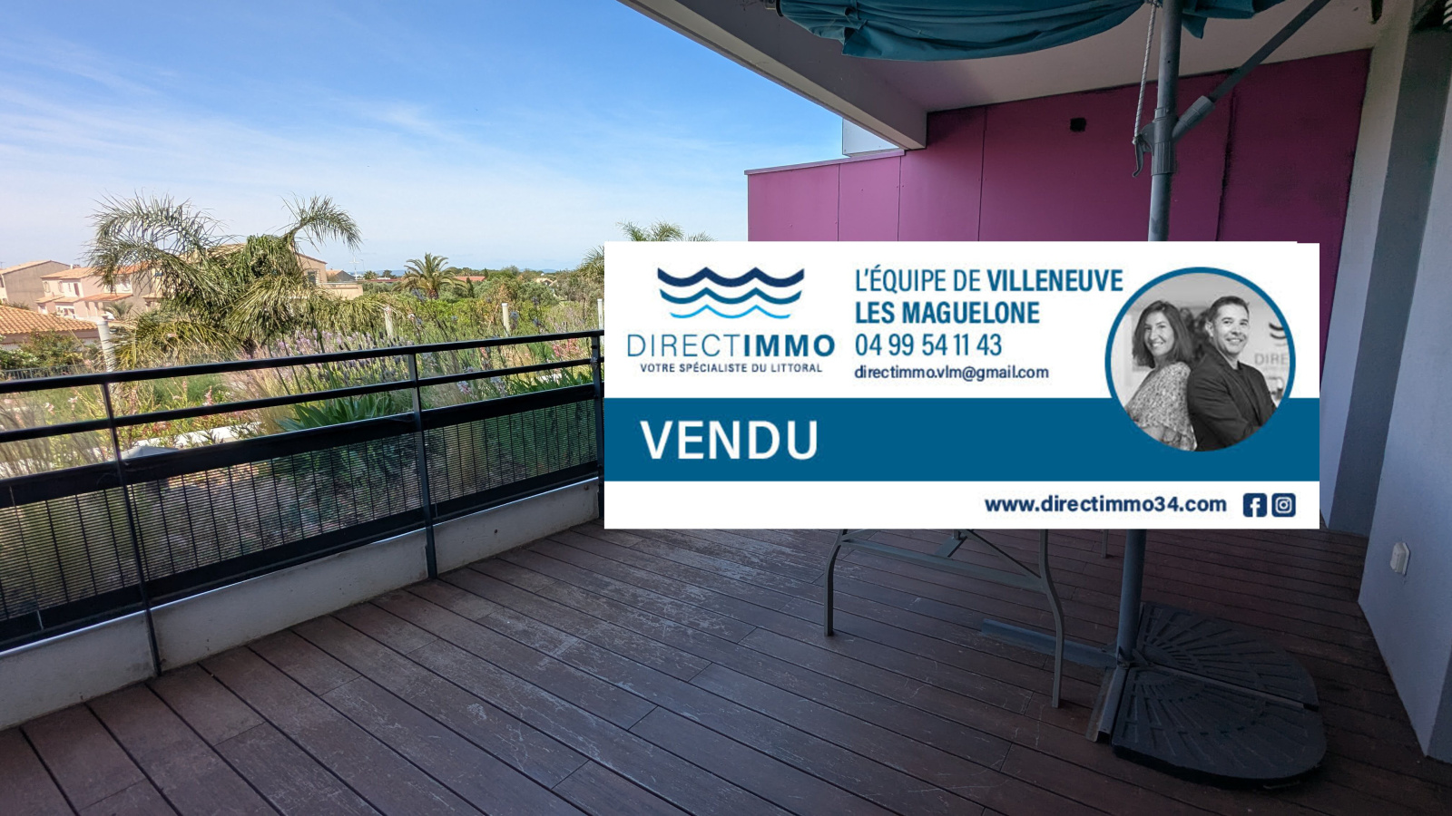 Palavas-Les-Flots, Dans une résidence sécurisée de 2011, appartement T2 de 39.20 m² environ , avec une chambre, disposant d'une belle terrasse agréable et ensoleillée de 22.55 m² ce qui élève la superficie à vivre à 62.55m². Vous profiterez de la vue sur la Redoute, les toits de Palavas, le Phare, et la piscine. Le bâtiment est conforme aux normes PMR et bénéficie d'un ascenseur. Vous bénéficierez d'un parking privé. taxe foncière: 1 046 € à l'année. N'hésitez pas à contacter votre agence Direct Immobilier si vous voulez en savoir plus. Stéphane Fontana 06 33 18 26 69