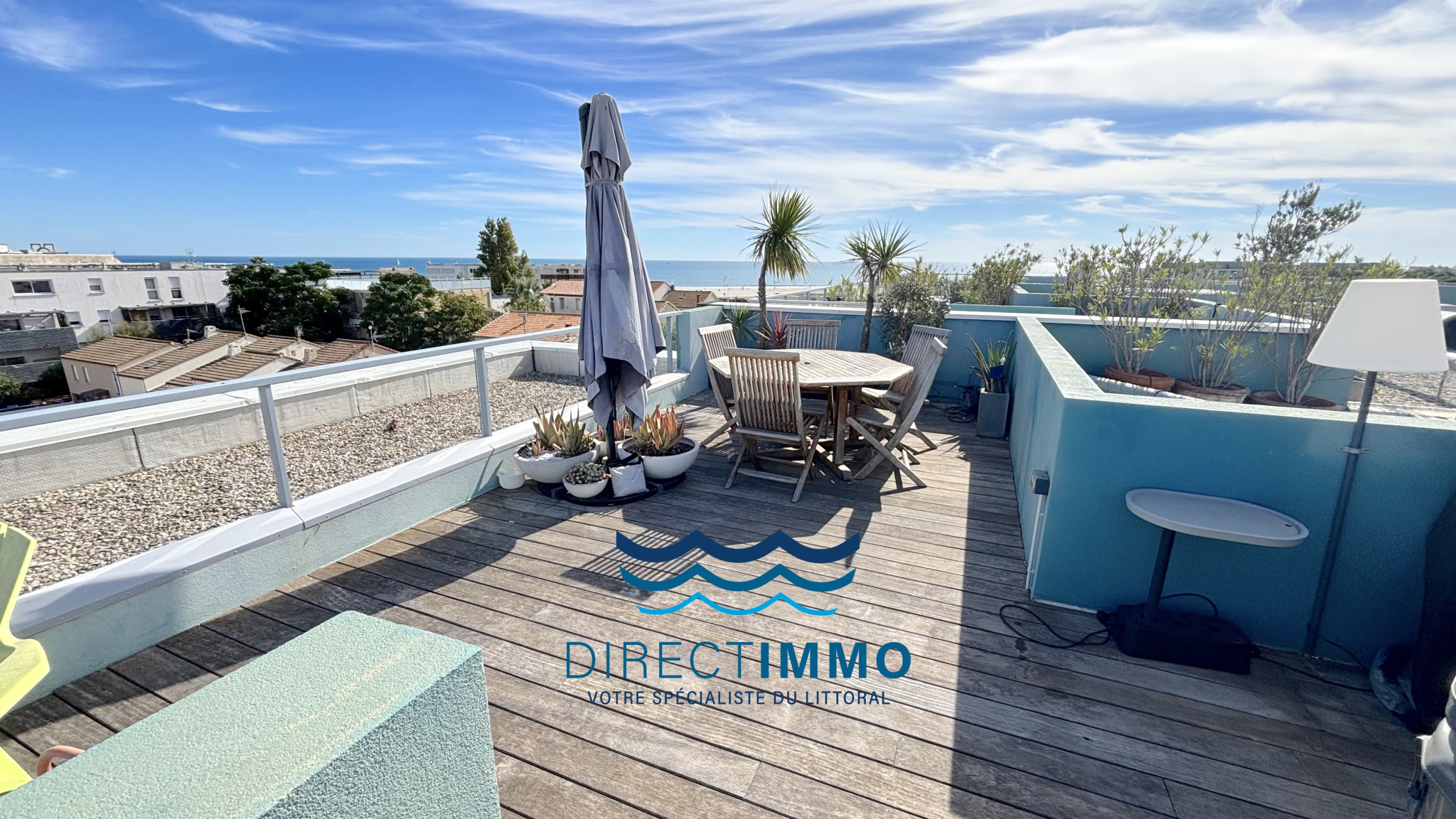 CARNON-PLAGE DERNIER ETAGE F3 AVEC TERRASSE ET SOLARIUM VUE MER PORT ET ETANGS + PARKING