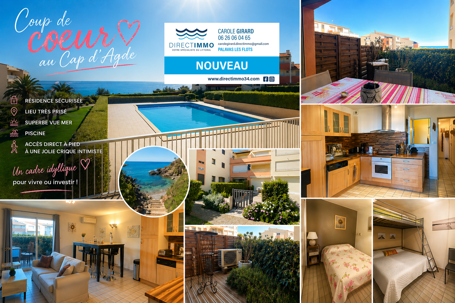 Charmant 2 pièces à Villeneuve-lès-Maguelone – 44 m² avec jardin et garage