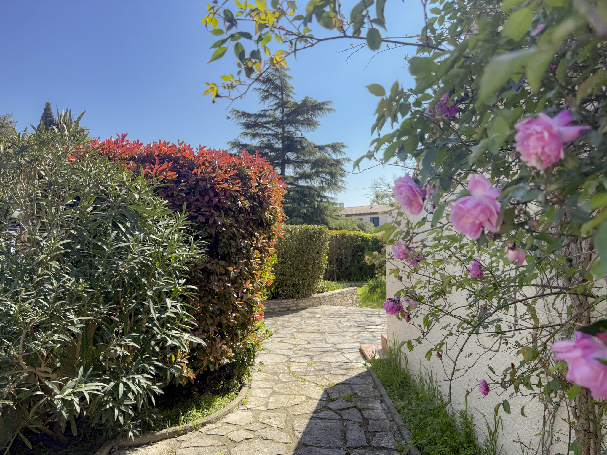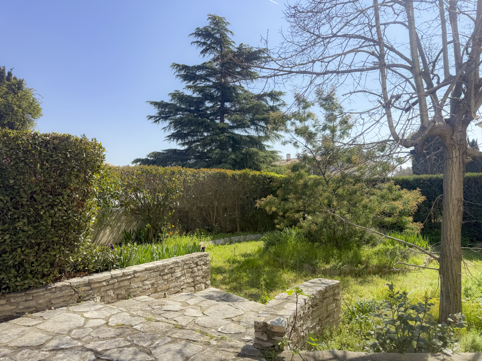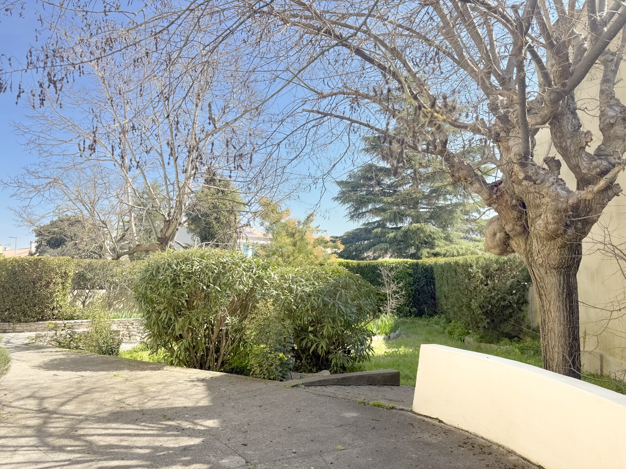 À l’extérieur, le jardin arboré apporte une véritable sensation d’intimité et de sérénité, complété par des espaces propices à la détente et aux moments de partage.