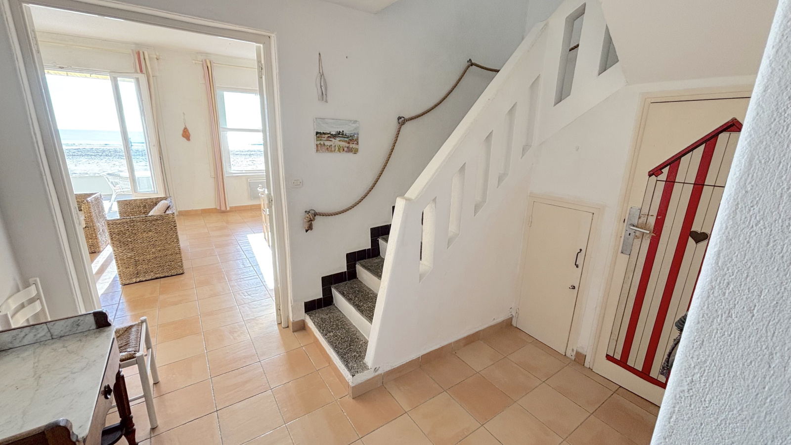La maison dispose également de trois places de parking, un atout rare en bord de mer.